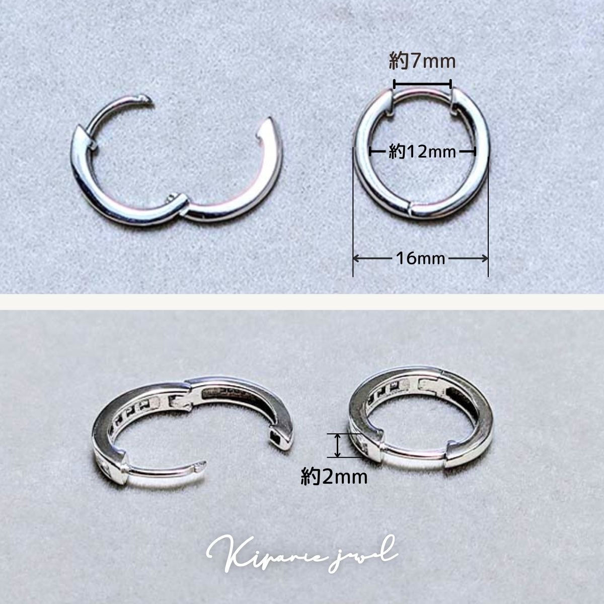 開閉式キャッチレスデザインのフープピアスです。