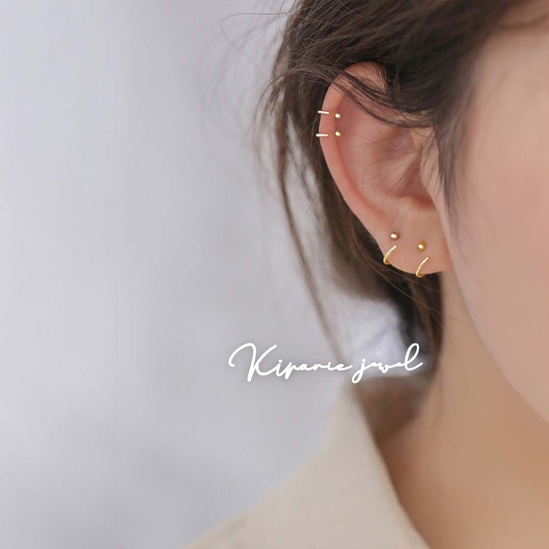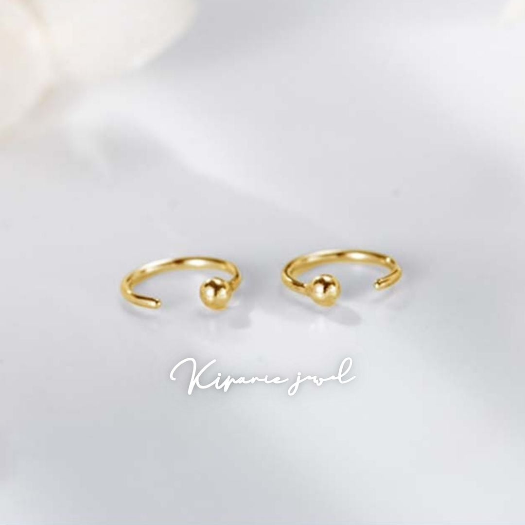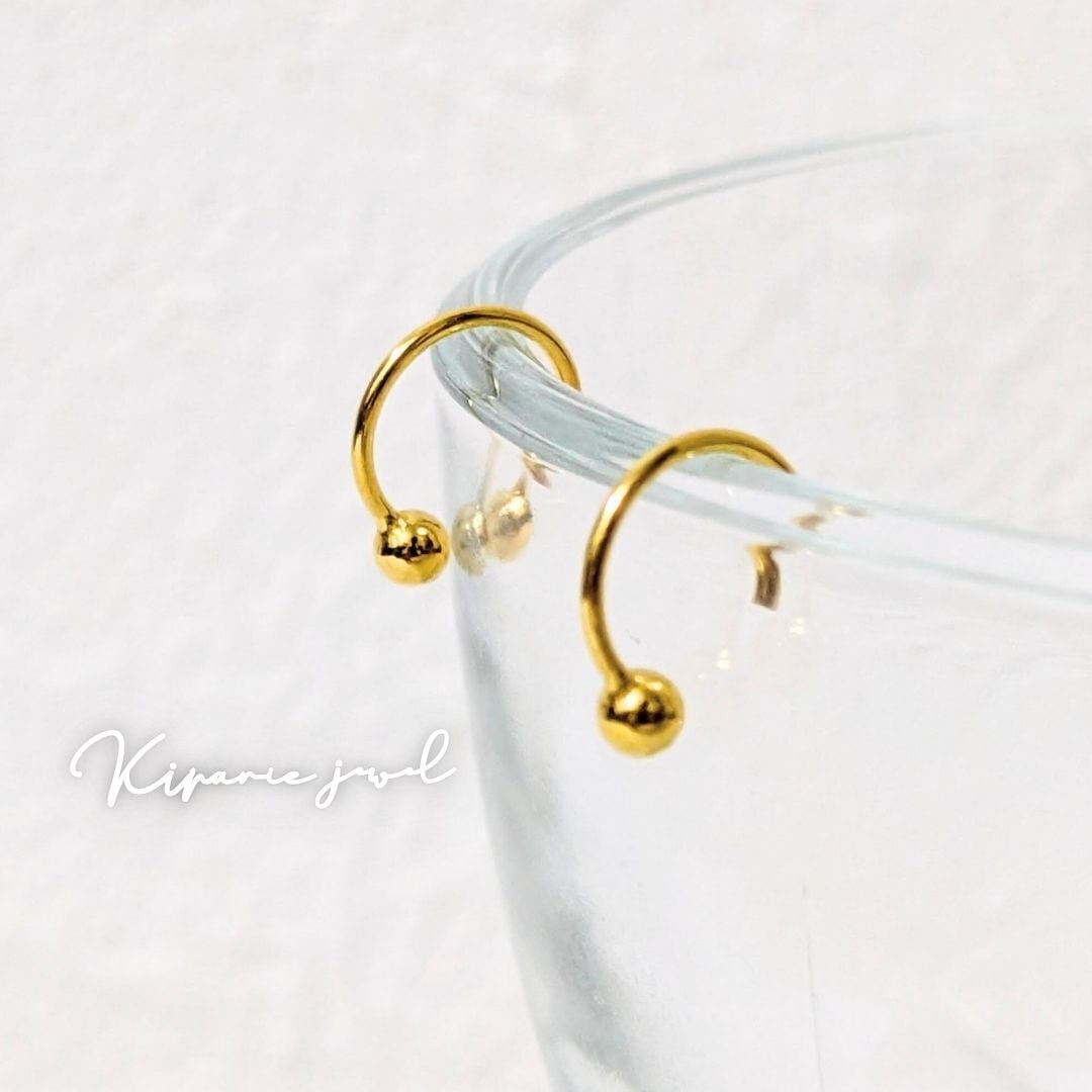 18K | ボール フックピアス 極小 ユニセックス 形 アレンジ 自由自在 リバーシブル SV925 ゴールド 金
