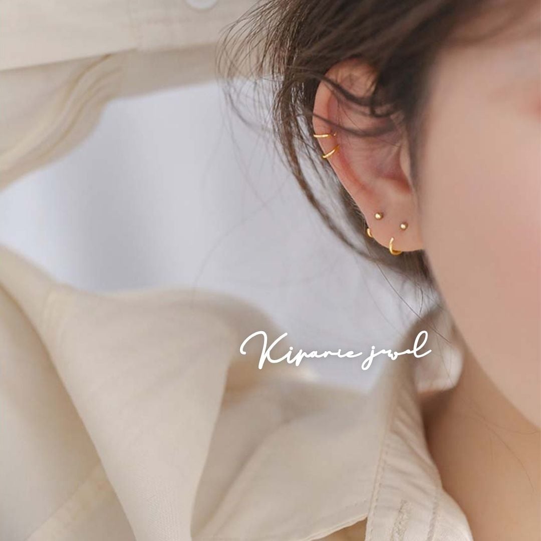 フックタイプのフープピアスなので、フープの先をピタッと閉じてスッキリ見せても、あえて少し開けて抜け感を出してもOK!