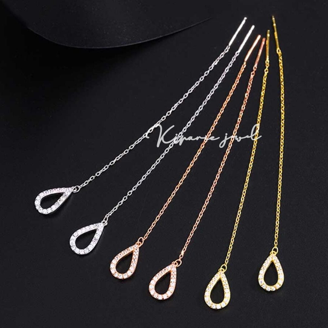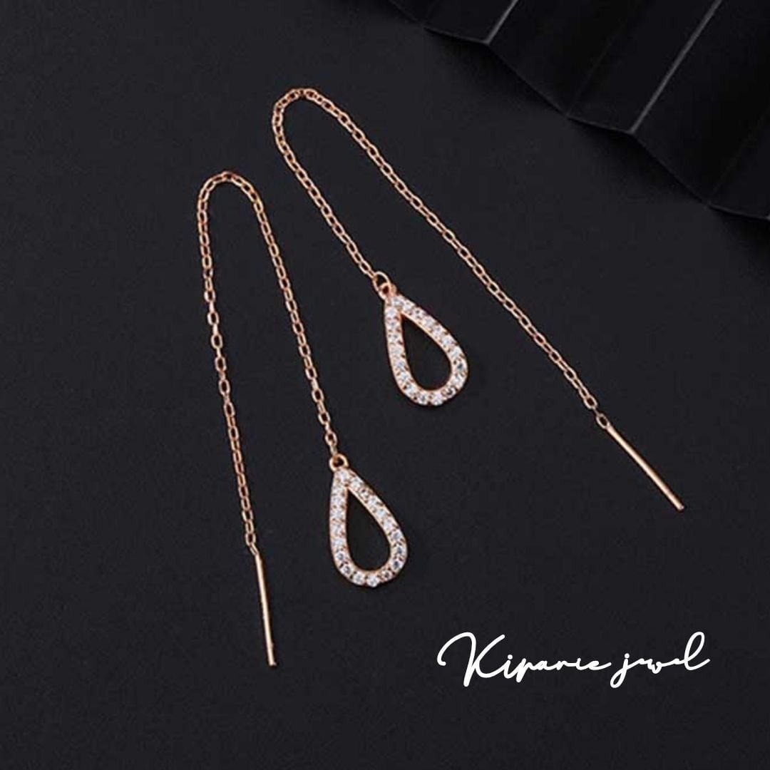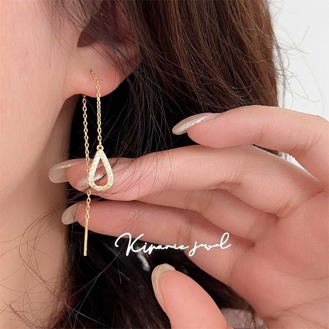 2way 雫 チェーン ピアス | 18K プラチナ仕上げ ✼ 天然石 ジルコン 誕生石 SV925 ドロップ アメリカンピアス 揺れる ✼ ゴールド シルバー ローズゴールド