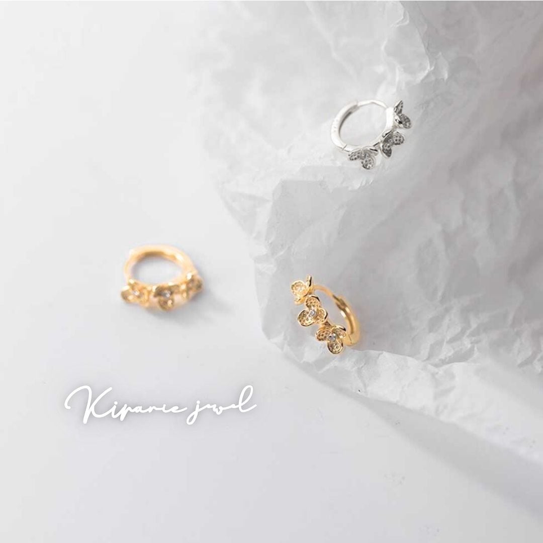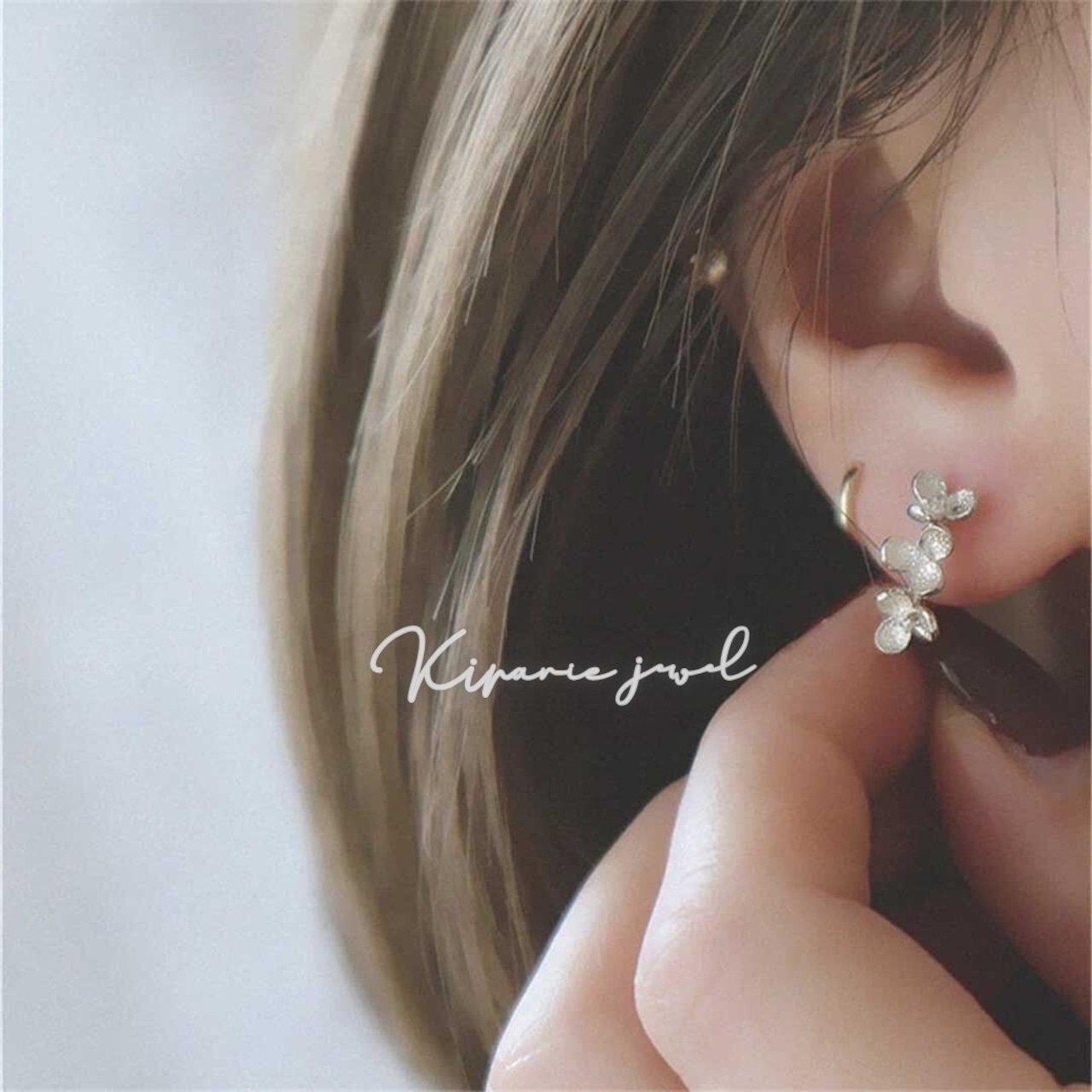 24K プラチナ仕上げ | 繊細 花びら フープピアス 小花 フラワー 大人女子 ✼ ゴールド シルバー