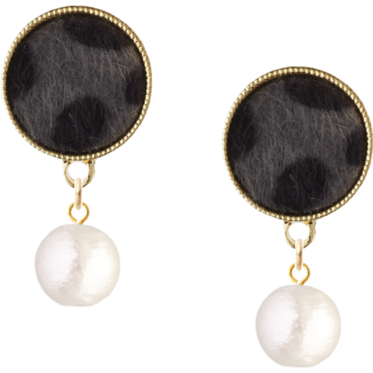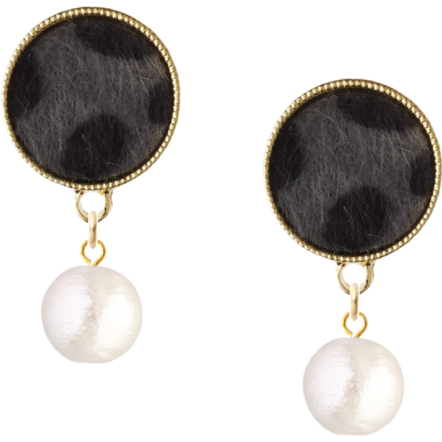 イヤリング | 可愛い コットンパール & フェイクハラコ レオパード 秋 冬 カジュアル 秋冬アクセサリー monomy モノミー ✻ ゴールド 金 (No.24)