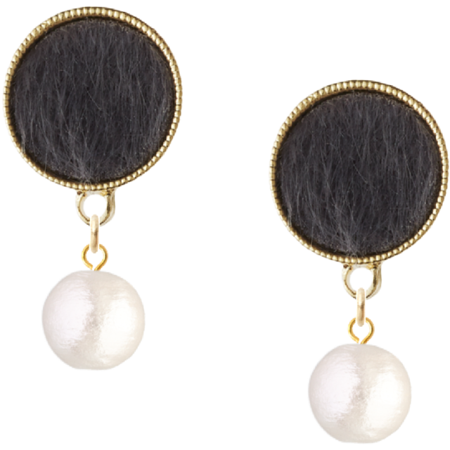 やさしいツヤ感が人気のコットンパールと、トレンド感あるフェイクハラコ素材を合わせたイヤリング。