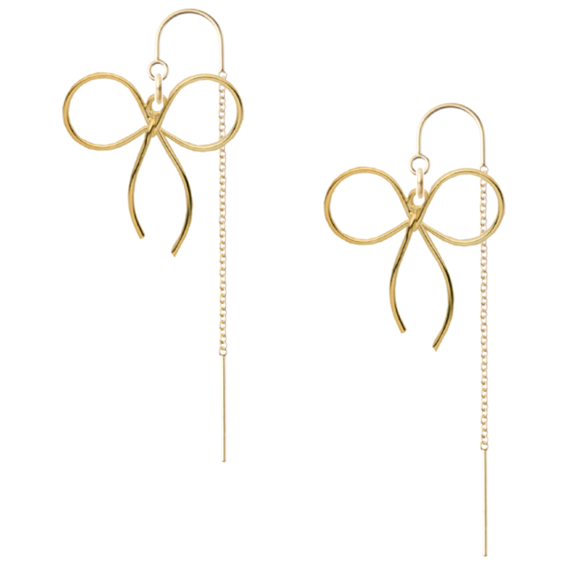 14K | 揺れる リボン 大人可愛い 金属アレルギー対応 フック チェーンピアス monomy モノミー ✻ ゴールド 金