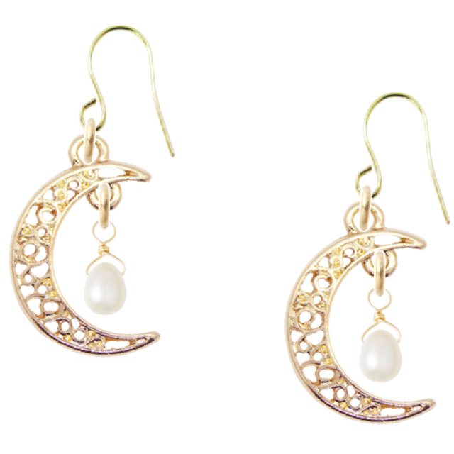 透かし三日月チャームと淡水パールが揺れる大人可愛いフックピアスです。