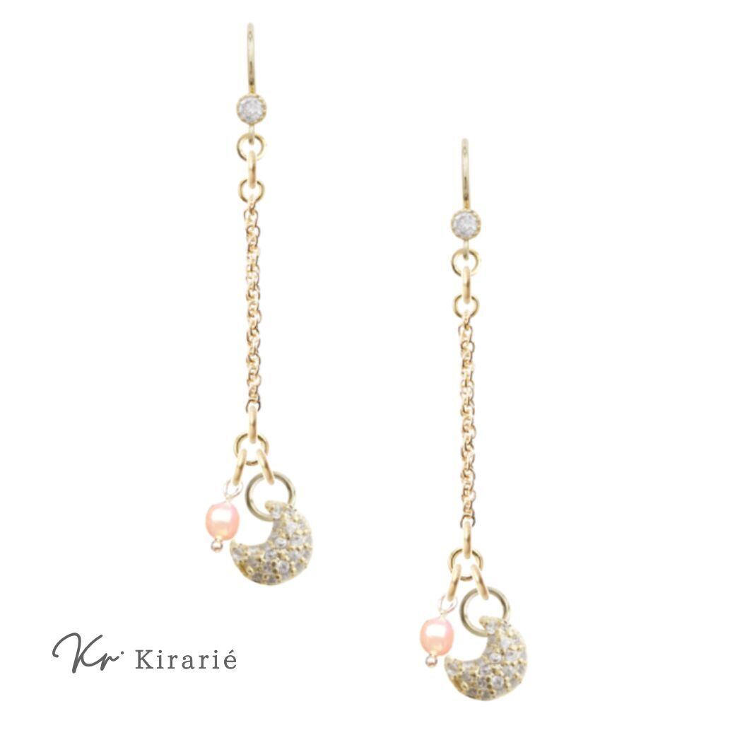 ラインストーンを散りばめた三日月モチーフの煌めきと、小粒パールの控えめな存在感のバランスが美しい一品。