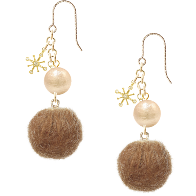 14KGF | 日本製チャーム 雪の結晶 シャンパン コットンパール ベージュ ファーボール フックピアス スワロフスキー ラインストーン 国産 monomy モノミー ✻ ゴールド 金 (No.78)